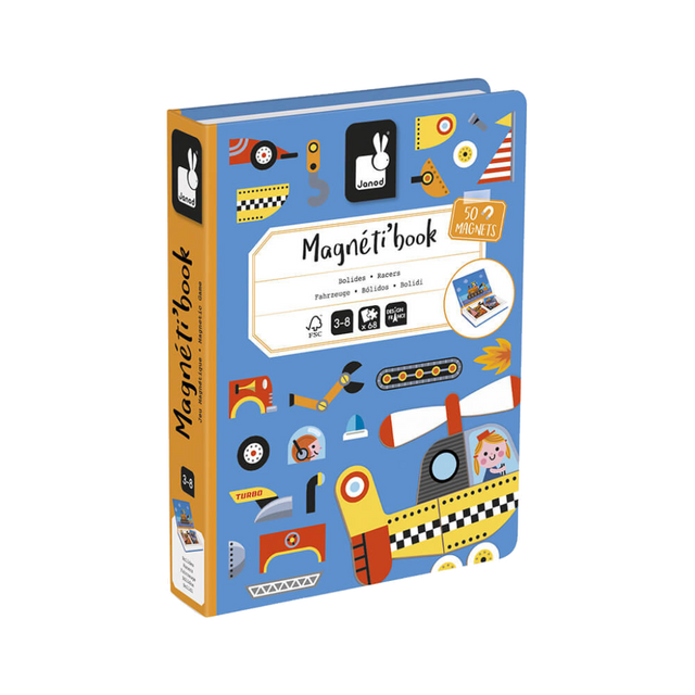 A box containing a treasure! The Magneti'book has been given a racing car version for all kinds of vehicle enthusiasts from the age of 3! Children will love creating and inventing vehicles with the 50 magnets provided! They can choose to reproduce the vehicles on the 18 model cards (fire engine, submarine, tank, boat, aeroplane, etc.) or use their imagination to create the vehicles of the future! Alone or with others, the Magneti'book racing cars allow children to manipulate pieces and assemble them to create anything they can think of! Easy to carry around thanks to its book format, this Magneti'book will also keep your children busy on a car journey or during family meals. Magneti'Books are clever educational games that are easy to carry and store! This product is made of FSC® -certified and other controlled material.