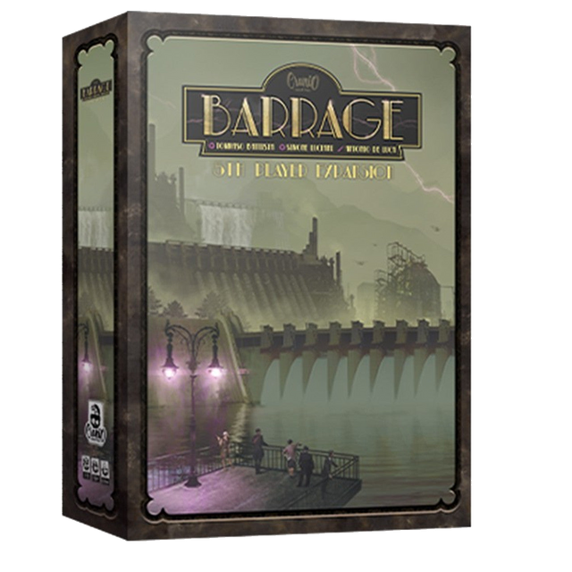 Barrage is a resource management and strategic placement game in which players compete to build their majestic dams, raise them to increase their storing capacity of precious water, and deliver all the potential power through pressure tunnels connected to powerhouse energy turbines. Each player represents one of the international companies who are gathering machineries, innovative patents, and brilliant engineers to claim the best locations to capture and exploit the water power of a contested Alpine region crossed by rivers.