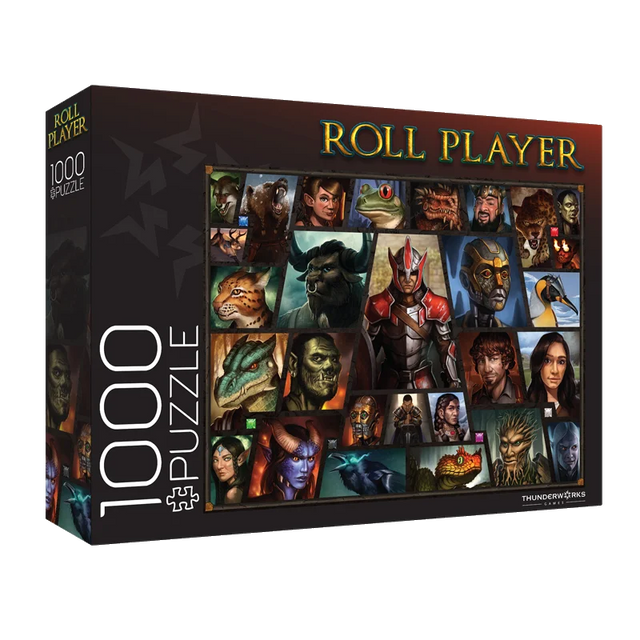 This Series 1 puzzle includes 1000 interlocking puzzle pieces and matching poster featuring art from the Roll Player board game by JJ Ariosa. Finished puzzle size is 27 x 20 inches.