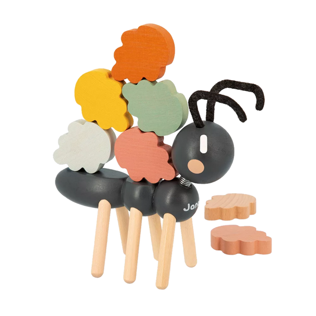 Our ant friend needs help! This wooden balancing game is intended for children aged 2 years and up. The aim: Balance as many leaves as possible on the ant's back without dropping them! This wooden board game promotes concentration and attention to detail, whilst ensuring a great time with the whole family. Our ant is in great shape. She is ready to take as many leaves as possible to the anthill but won’t say no to a helping hand! This game of skill comprises a large ant made of wood and felt, and 20 coloured wooden leaves. The rules of this board game are simple and therefore suitable for young children. They can also play alone and try to beat their personal best. Otherwise, the whole family can come together and play: whoever drops the pile loses! Ideal for helping even the youngest demonstrate skill and dexterity. This balance game boasts pieces that have been designed specifically for little hands. This original and durable early-learning toy is made from FSC™-certified wood and is part of our Sweet Cocoon collection.