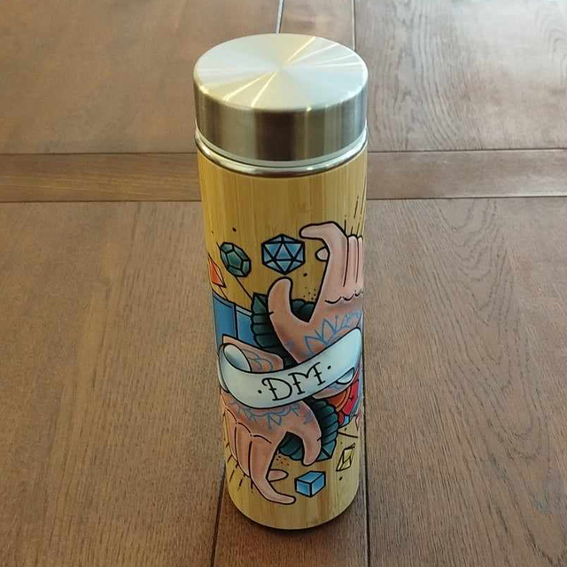 When you’re on an adventure you don’t have time to stop and brew a cup of tea. This double insulated stainless steel and bamboo thermos is here to keep your adventure going all day and night, with over 10 hours of heat holding ability the only thing you need to worry about is saving your CON check if you don’t let your tea cool off first. Drink in the adventure with the tumbler that has classic tattoo class art for your favourite 5e class.