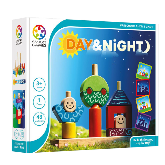 Day & Night is a fun-filled game of logic that evolves in step with your child’s growing skills. Kids arrange and stack the pieces to match the challenges on the included challenge booklet. Just as night follows day, the "day" challenges provide a great start that gradually build up to the more advanced "night" challenges.