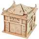 An intricately carved, winding wooden staircase ascending upwards into a brightly lit space.