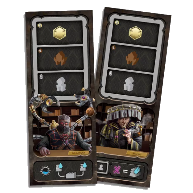 • Dr. Octavius: When producing energy by activating one of your Powerhouses with a Production action, you can use any Water Drops from one or more of your Dams or Neutral Dams connected to the activated Powerhouse.