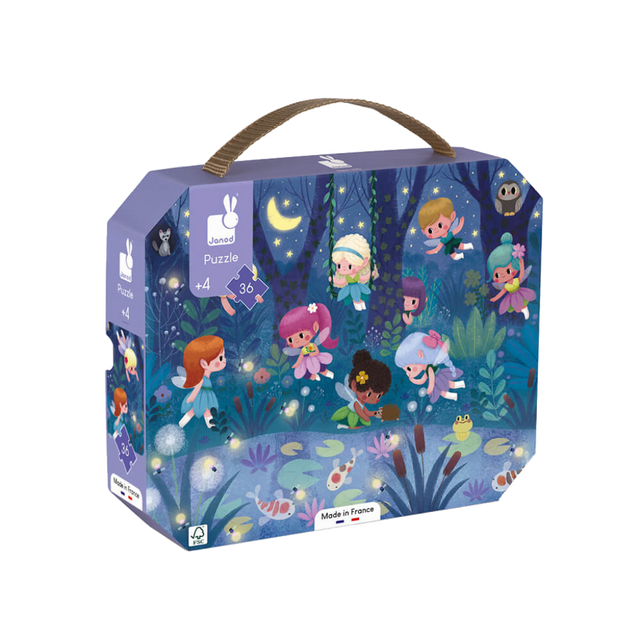 To discover this little fairy world, while developing memory and dexterity, here’s a beautiful 36-piece cardboard puzzle. In its pretty little case, this puzzle will be easy to transport thanks to its fabric handle. Contains a poster that serves as a model for beginners, with the more experienced then able to complete the puzzle on their own. The forest-based material in this product is FSC® mix. Made in France.