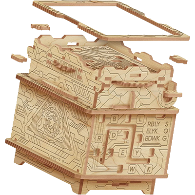EscapeWelt, the creator of mini escape rooms, presents a new format of 3D Puzzle Game Fort Knox Box Pro, wooden 3D puzzle. Assemble all the pieces together with your loved ones without leaving home! Thrilling and intricate expirience await you. 3D Puzzle Game Fort Knox Box Pro is designed by experienced engineers who have developed unique puzzles and multi-level challenges. We don't promise it will be easy. But we guarantee you will never get bored with it!
